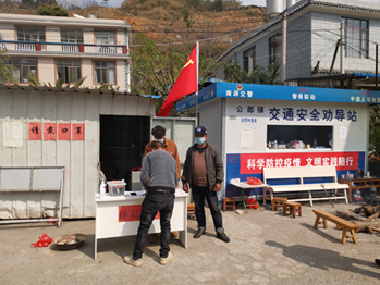 安全171班罗洛同学积极响应党和国家的号召,为了组织疫情的蔓延,参与了村委会组织的堵卡工作。此次志愿活动,罗洛同学主要工作是引导进出村民进行体温测量与进出登记的工作。在志愿者岗位上,罗洛同学尽职尽责。