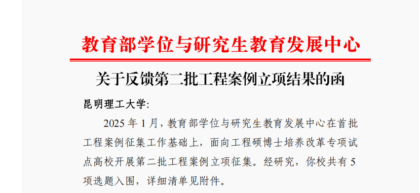 提交申报的5项工程案例全部成功获批,标志着学校在工程硕博士培养模式改革、产教协同育人国家级项目领域取得重要突破。本次工程案例立项征集工作紧贴工程硕博士人才培养要求,聚焦关键领域和重点产业发展急需的工程硕博士人才培养,充分发挥自身专业优势,围绕中国工程实践开发了一系列具有创新性、典型性和实践价值的工程案例。
