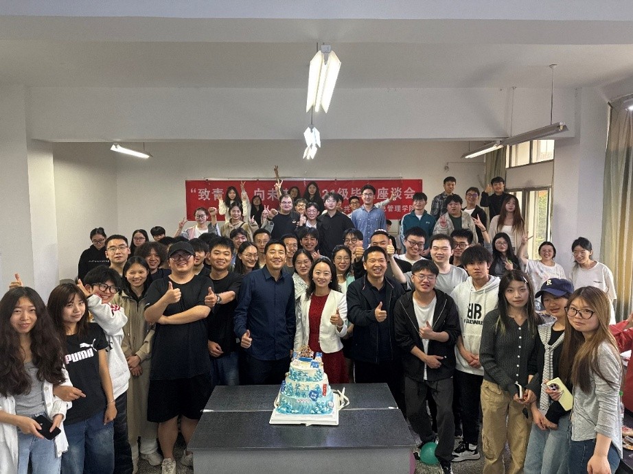 于主教学楼410教室开展“致青春,向未来”2021级毕业座谈会,学院党委副书记谷敏、班主任郭延辉、辅导员刘申张及2021级毕业生参加本次座谈会。