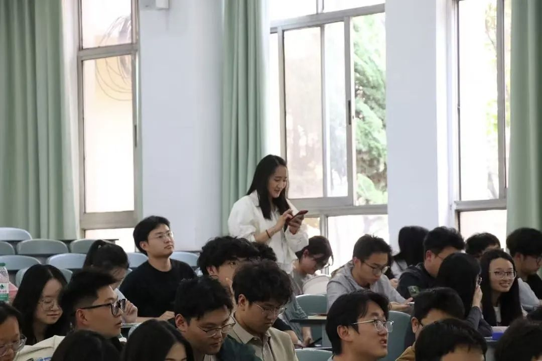 同时,主讲人积极开展现场互动,在讲解中向同学们提出相关问题,引导同学们参与思考,为回答问题的同学赠送特色礼品,营造了活泼、互动的活动氛围。同学们也专注倾听、用心领会,展现出良好的精神风貌和积极的学习态度。